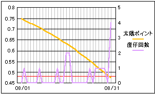 やはり暑さのためか全体的に産仔数が少なく、隙間が目立つグラフになりました。