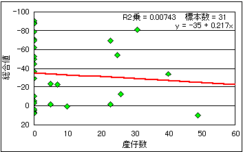 見た目には何となく相関があるようにも見えますが、やはり単一要素だけでは、完全に産仔回数とは一致していません。