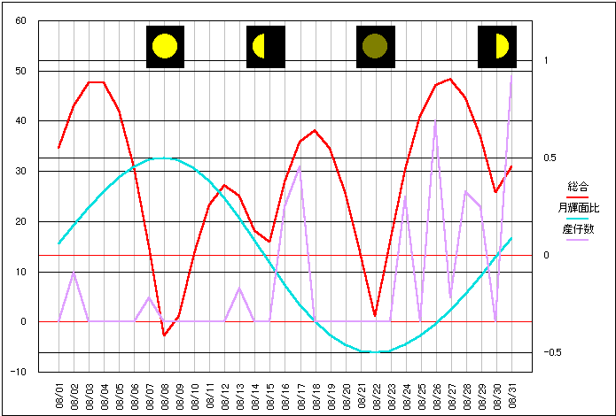 当サイトの危険度グラフの算出項目の変更から、昨年10月分から当ページでも月齢ポイントを位相ポイントに変更しました。