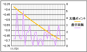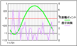 太陽と月の黄緯差を数値化したポイントと比較。