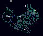 星座絵では、やぎ座は上半身が山羊、下半身が魚として描かれ、西の角が山羊の頭、東の角が魚の尾を表わします。