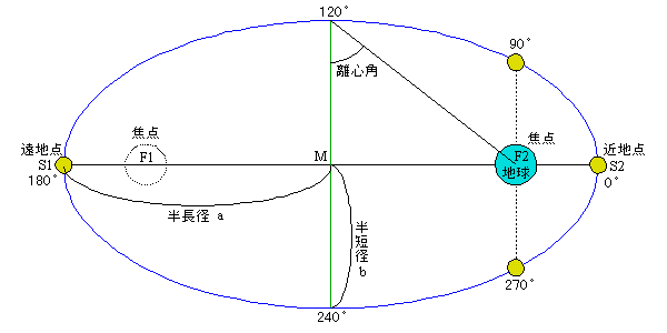 楕円軌道の焦点は2つありその内一方の焦点上に地球は位置しています。