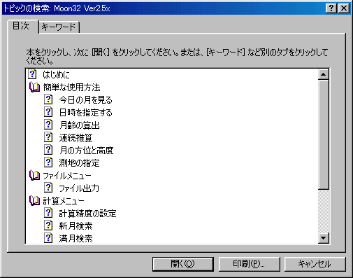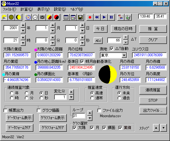 ●内部算出精度の調整、メインフォームの月相表示スタイルの変更。(1999/01/15 Ver2.21d)暫定版