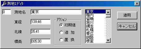 ●データフォームの変更、スピンボタンの変更、操作性の改善。(2001/01/07 Ver2.80a) |