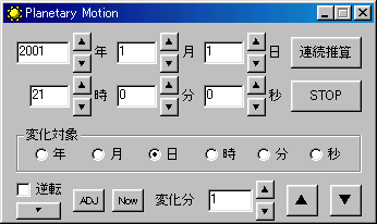 Planetary Motionは、太陽系内の惑星と月の動きを計算し表示するソフトです。
