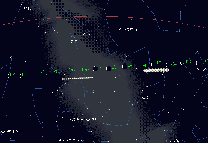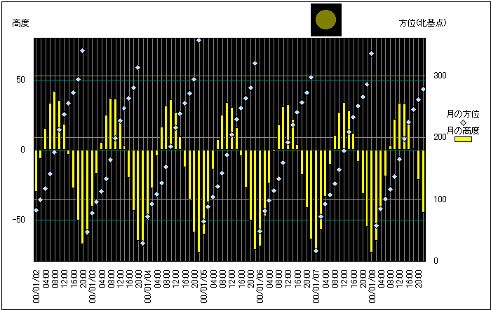 ![]() | 任意日時で月齢や月と太陽の位置や距離を算出します。 | |