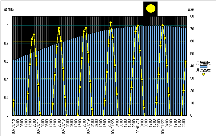 ![]() | 任意日時で月齢や月と太陽の位置や距離を算出します。 | |