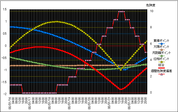 1995年1月17日、午前5時46分港町神戸を襲った震災から5年の歳月が経とうとしています。 しかし、未だ深い傷跡の残る、神戸の街は景気低迷の流れの中で完全復興を遂げていないのが現状だと言われています。 阪神淡路大震災が、折しも満月の晩に起きたことは震災直後から話題になりました。 当サイトへも多くのご質問を戴き、これまでも多くの方々に当時の危険度グラフなどを用いてお話しして参りました。 満月や新月には太陽と月の引力によって生じる朝夕力が潮位を上げることは、一般に良く知られていますが、近年のGPSなどの衛星を用いた観測では、不動と思われていた陸地でさえ、最大で数十センチも引き上げられていると言うことが明らかになってきています。 月の引力が直接的に地震発生のメカニズムになっていると言うことではなく、プレート同士のゆがみがピークに達した際に、それが地震発生の引き金となるのではないかという仮説も成り立ってくるのです。 私たちが常日頃見上げている月によって、命の誕生からその死までをも、影響を与えていると言われるのも、あながち嘘ではないようです。 医学界では多くの研究者が多産婦における出産が満月及び新月に増加していることを報告しています。 また、手術などでの出血量等とも密接な関係を持っているとさえ言われています。 一方で、式典業者の方々からは、満月や新月前後の争議数の増加傾向についての報告を戴いています。 では、どうしてこのようなことがおこるのでしょうか? いつも「夜空の月を意識した生活が、私たちの暮らしを変えて行く」と言うお話をしている訳ですが、これらは全く矛盾した出来事ではないのか?と言ったお便りを沢山戴きます。 一見すると月は私たちに災いをもたらすだけの存在のように見えてしまいます。 しかし、この地球上に存在するありとあらゆるものが、太陽や月の引力を受けているいうとことを、忘れてはいけないのです。 私たちの祖先である、ネズミのようなほ乳動物の時代や、遙か単細胞生物であった時代から30億年以上もの歳月をかけて、月のリズムと共に進化してきたと言っても過言ではないのです。 目に見えない力によって、突然引き起こされるわけではなく、月や太陽による天文学的な周期と共に私たちの身体に刻まれたリズムがそうさせていると言うことなのです。 月のリズムからは全く引き離された現代の時間と空間の尺度の中では全く理解できないそうしたリズムを、夜空の月を通して、再び認識することが私たち自身の理解の深まりへと繋がり、多くの悲劇を未然に防ぐことが可能となって行くものだと信じてなりません。 阪神大震災の悲劇から5年が過ぎ、追悼式の17日から5日遅れで今月の満月が巡ってきます。 折しも、日本では見ることの出来ない皆既月食にもあたり、月と太陽の引力の影響は最も大きくなります。 アジアを襲う震災の悲劇を繰り返さないためにも、多くの教訓や技術が活かされて行くことを願いつつ、今週末の満月に祈りを捧げたいと思います。 |