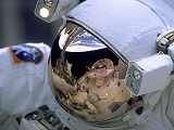 シャトルの後部格納部を解放した後に、垂直尾翼の方向に浮かんだ月の姿を捉えたものです。 地球上空の軌道上を巡るシャトルからは、美しい地球の姿を捉える写真が多い中、月を捉えた数少ない貴重なショットです。 画像サイズは600×480と1024×768ピクセルの2種類を用意しています。 |