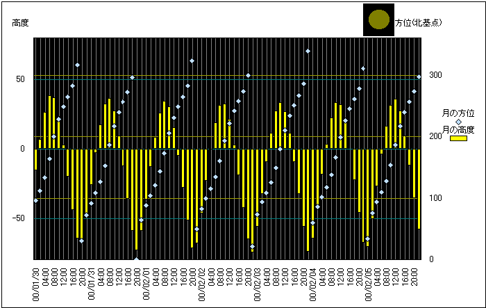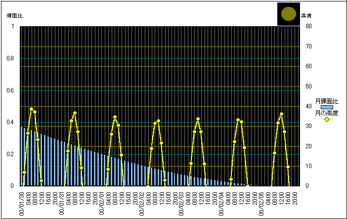 ![]() | 任意日時で月齢や月と太陽の位置や距離を算出します。 | |