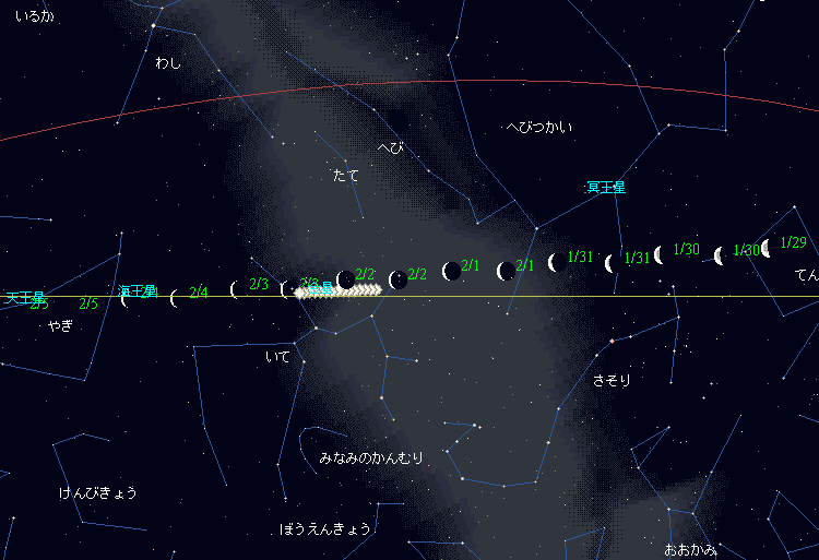 太陽黄経が315゜(21:40) 海王星が月の北に接近0°18′(23:22) | 立春 | 12/29 |