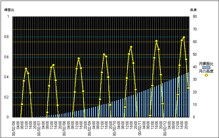 ![]() | 任意日時で月齢や月と太陽の位置や距離を算出します。 | |