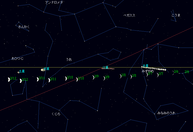 | 12 | 土 | 6.580 | 5 | ![]() | 土星が月の北02°58′に接近(10:56) | パンの日 | 1/8 |