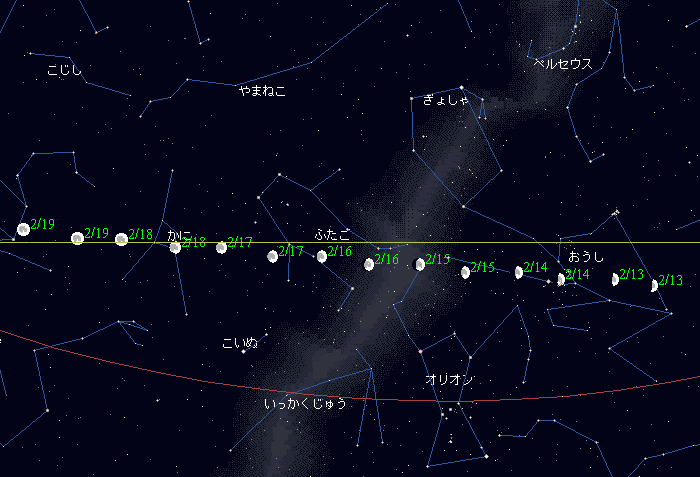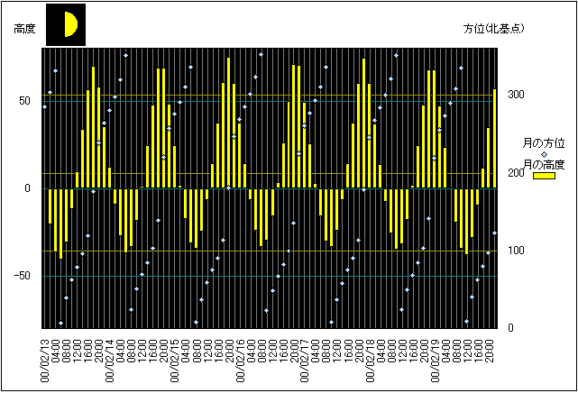 | 13 | 日 | 7.580 | 7 | ![]() | 上弦の月(08:21) | 1/9 | |