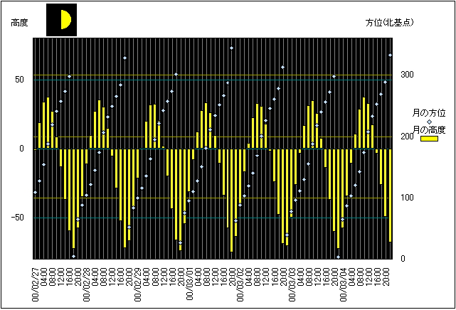 ![]() | 任意日時で月齢や月と太陽の位置や距離を算出します。 | |