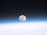 薄い大気の中から浮かび上がってくるようにさえ見えます。 日の出や日没の太陽が楕円に見えるように、この写真でも下の方が歪んでいます。 いつかは私たちもシャトルに乗ってこのような光景が見られる日が来るのでしょう。 画像サイズは600×480と1024×768ピクセルの2種類を用意しています。 |