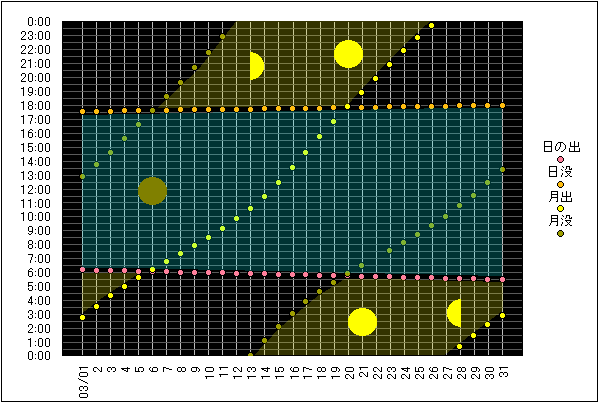 満月・望(13:44) 太陽黄経 0°(16:35) 水星が降交点を通過(18:30) 春分の日 |