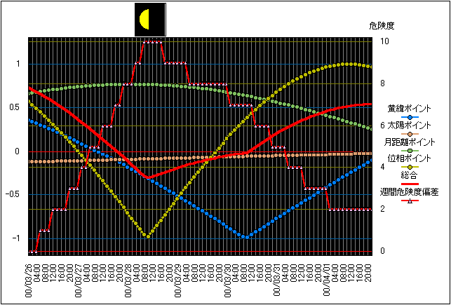 | 1 | 土 | 25.904 | 3 | やぎ座δ星の星食(04:25) | エイプリルフール | 2/27 |