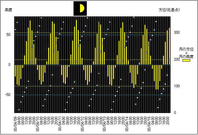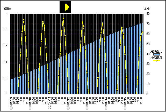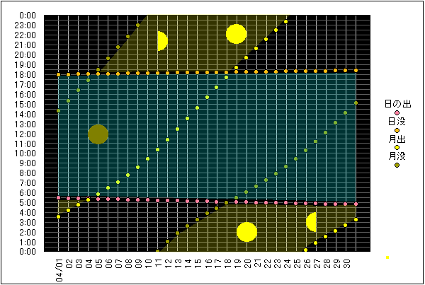 ![]() | 任意日時で月齢や月と太陽の位置や距離を算出します。 | |
