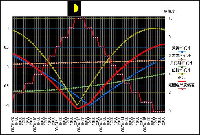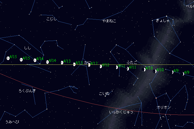 ![]() ![]() | 月が黄道を通過:黄緯0゜(12:07)昇交点 |