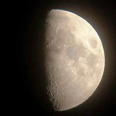月齢6.716 輝面比48.99 370,497km 七日月・上弦 気温11.5度 昼と夜の間に位置する月は、丁度半分だけ輝きを放っています。 昨夜の雨が月の輝きを一層増してくれたように、思わず引き込まれる美しさです。 これから満ち行くにつれ夜の世界に向かい、満月には昼の世界から離れます。 月の輝きの面と陰の面は、昼と夜との度合いを示すバロメーターです。 |