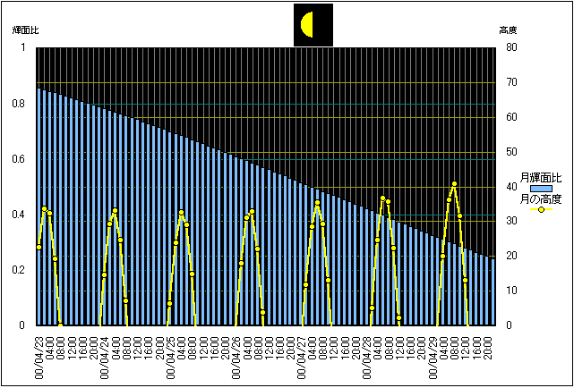 ![]() | 任意日時で月齢や月と太陽の位置や距離を算出します。 | |