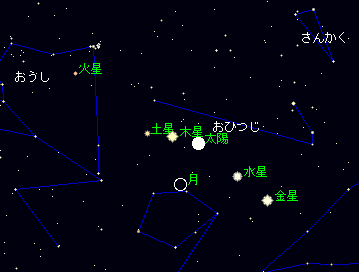 天王星が月の北1°14′に接近(07:39) 水星が金星の南0°18′に接近(22:26) |
