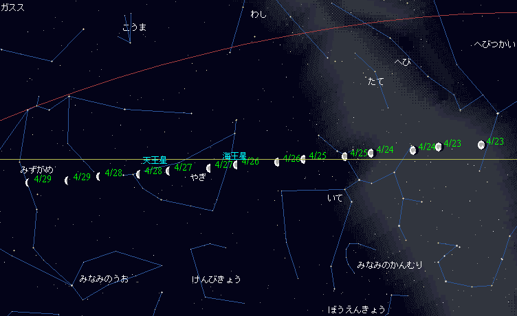 | 25 | 火 | 20.365 | 4 | ![]() | 月の赤緯が最南−21°29′(00:51) | 3/21 | |