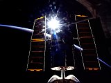 強烈な太陽の光を受けて浮かび上がる地球のシルエットが美しさを強調しています。 この青い大気の層を越えて、ハッブル宇宙望遠鏡の活躍を祈りたいものです。 画像サイズは600×480と1024×768ピクセルの2種類を用意しています。 |
