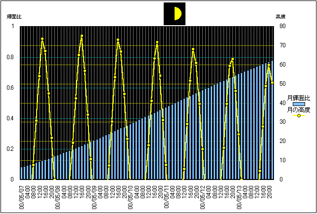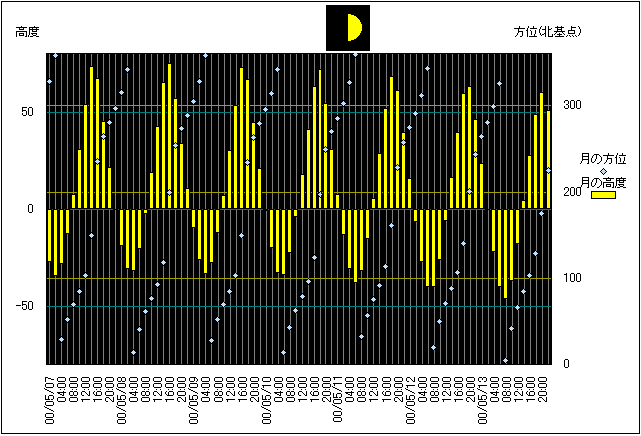 ![]() | 任意日時で月齢や月と太陽の位置や距離を算出します。 | |