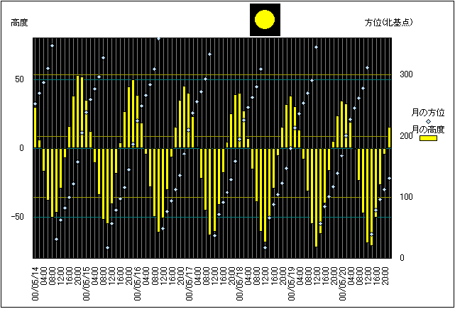 ![]() | 任意日時で月齢や月と太陽の位置や距離を算出します。 | |