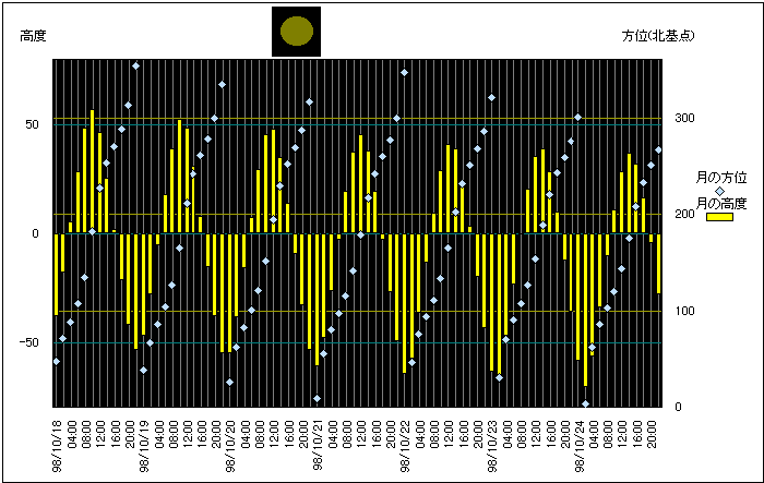 ![]() | 任意日時で月齢や月と太陽の位置や距離を算出します。 | |