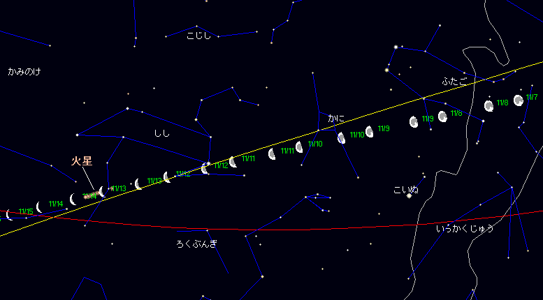 | 札幌での火星の位置予報 | ||||||||||||||||||||||||||||||||||||||||