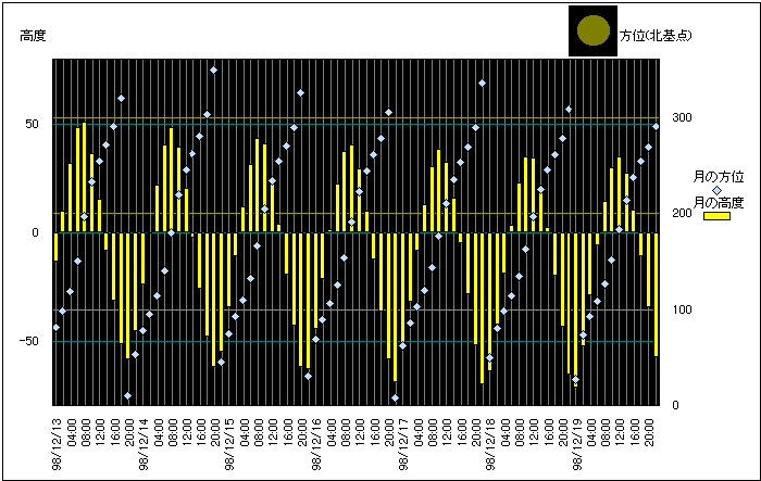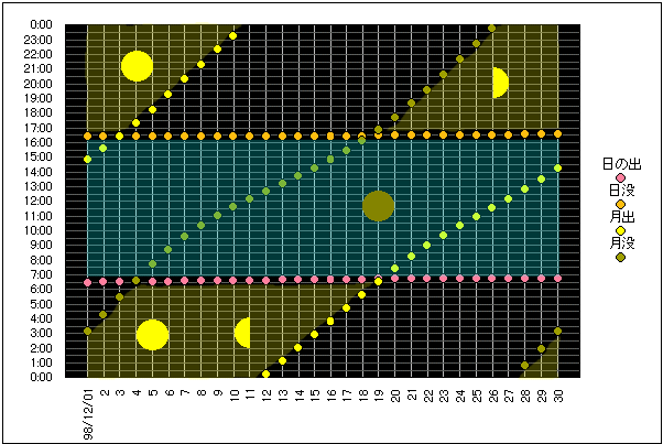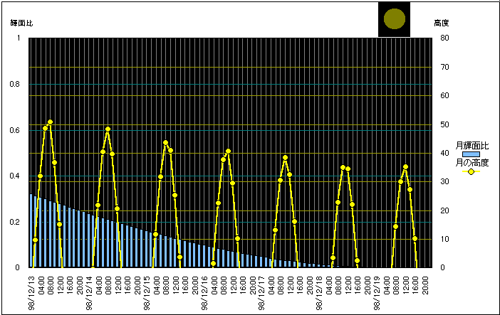 ![]() | 任意日時で月齢や月と太陽の位置や距離を算出します。 | |