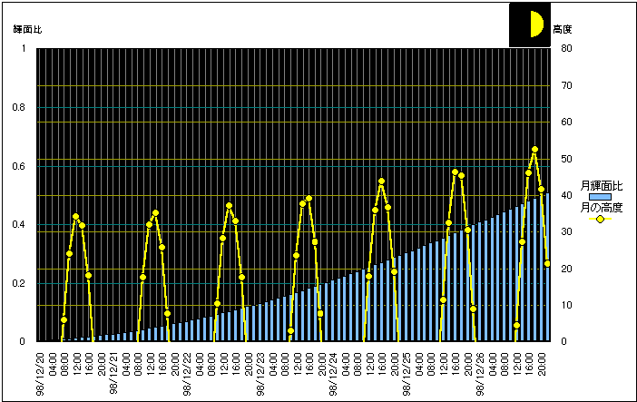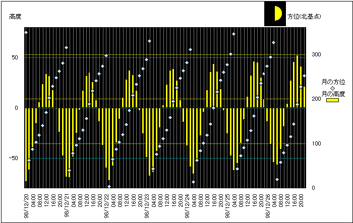 ![]() | 任意日時で月齢や月と太陽の位置や距離を算出します。 | |