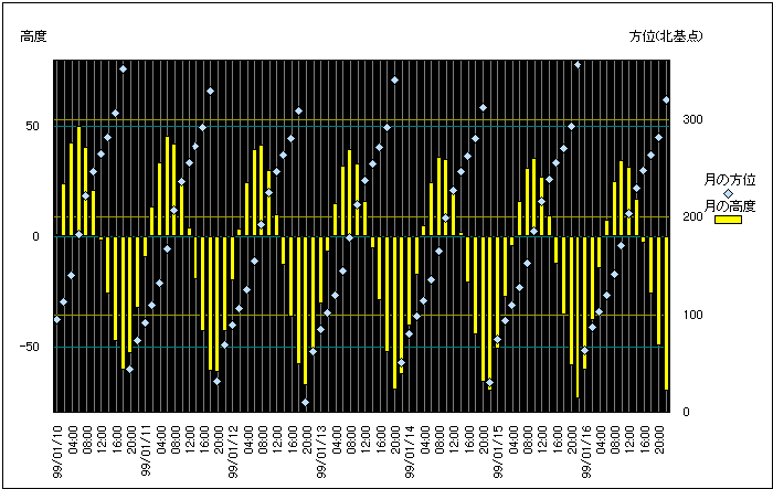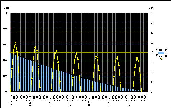 ![]() | 任意日時で月齢や月と太陽の位置や距離を算出します。 | |