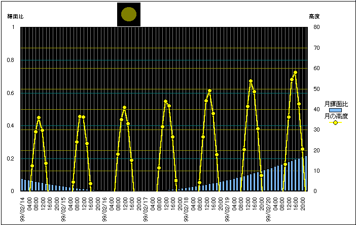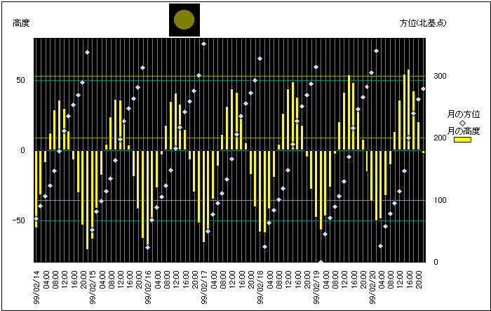 ![]() | 任意日時で月齢や月と太陽の位置や距離を算出します。 | |