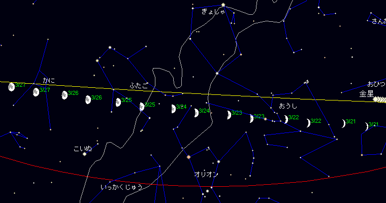 | 24 | 水 | 6.34 | 8 | ![]() | 上弦の月(19:18) | 2/7 | |