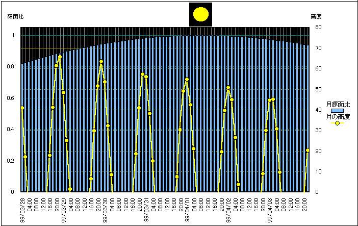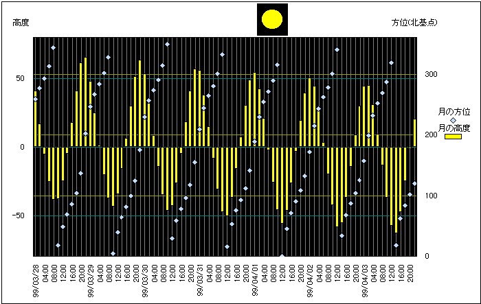 ![]() | 任意日時で月齢や月と太陽の位置や距離を算出します。 | |