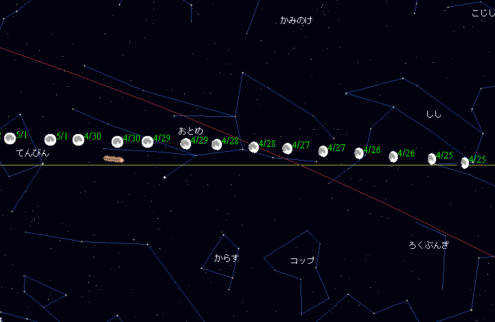 | 25 | 日 | 8.94 | 7 | ![]() | 月がしし座レグルスの北0゜28′に接近(06:44) | 3/10 | |