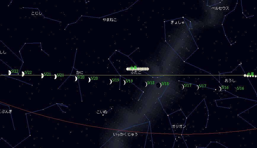 太陽黄経が60゜(20:52) 月が黄道を通過:黄緯0゜(12:11)昇交点 | 小満 | 4/7 |