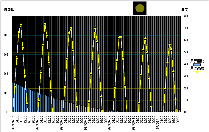 | 月齢や月と太陽の位置や距離をリアルタイムで算出します。 | ||