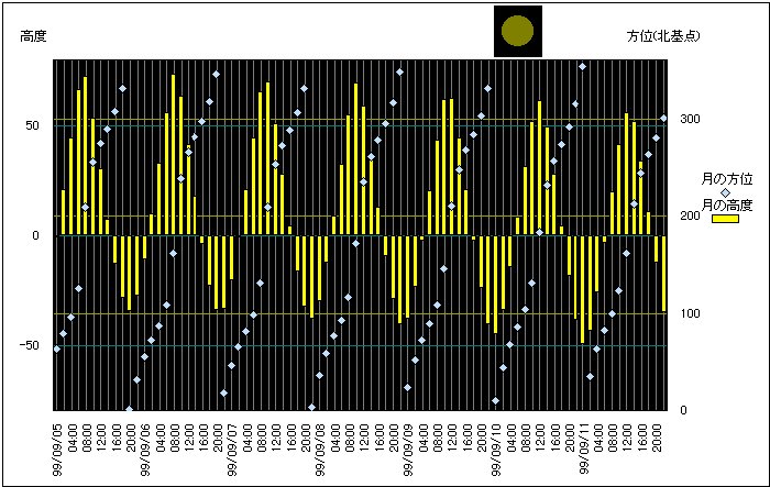 ![]() | 任意日時で月齢や月と太陽の位置や距離を算出します。 | |