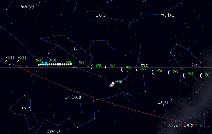 太陽黄経が165゜(11:10) 金星が月の南7゜55′に接近(05:30) |