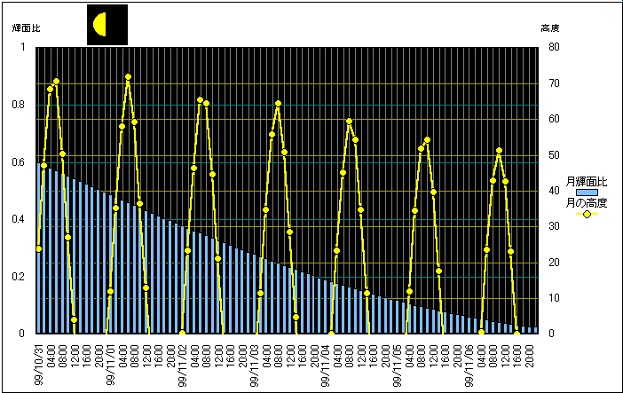 ![]() | 任意日時で月齢や月と太陽の位置や距離を算出します。 | |