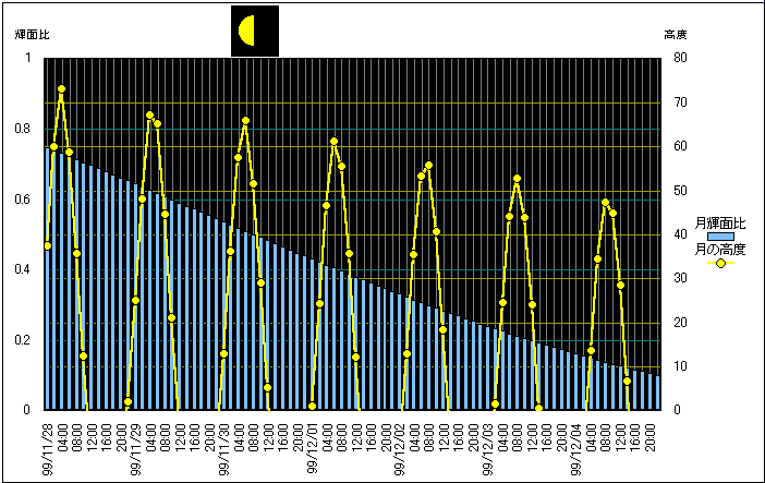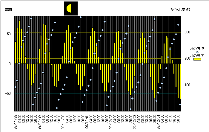 ![]() | 任意日時で月齢や月と太陽の位置や距離を算出します。 | |
